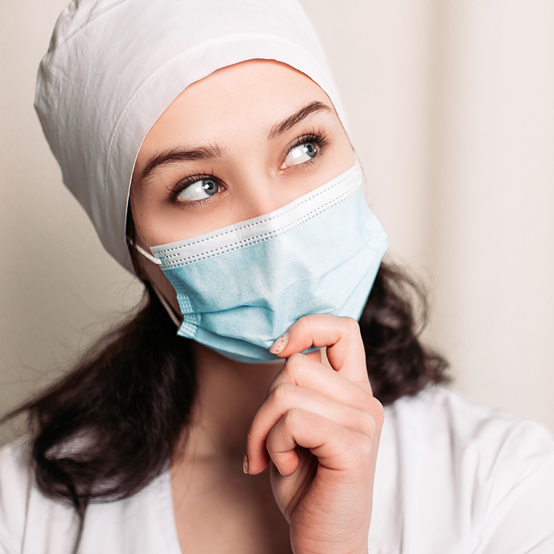 Gorro tipo médico, en la parte frontal por dentro, dispone de una banda de tejido para atrapar el sudor. De forma redondeada, se ajusta con nudo por detrás.